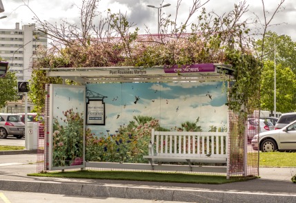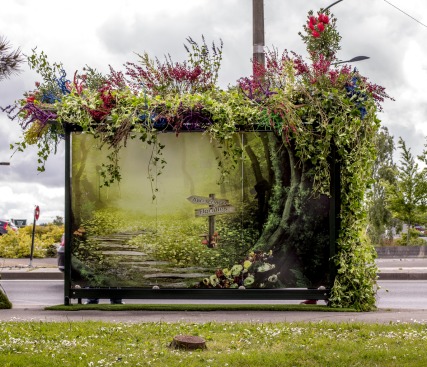 Du 6 au 19 mai, l’opérateur régional de mobilier urbain Abri Services s’est associé à la 11ème édition des Floralies en créant des abribus végétalisés. L’objectif est de proposer une nouvelle interprétation du « bouquet d’arts » à travers deux abribus événementiels, visibles à Orvault et Rezé (près de Nantes), imaginés avec des mises en scène inédites qui reprennent les thématiques phares des Floralies 2014 (musique, cinéma & grands studios, poésie…). Pour Yvon Suillaud, dirigeant de la société Abri Services depuis 2004, il s’agit de surprendre, d’étonner, d’éveiller les curiosités et plus largement, de participer à la vie de la ville et de ses habitants. « La créativité est l’une des signatures de l’agglomération nantaise, et notre initiative s’inscrit dans cette lignée. »