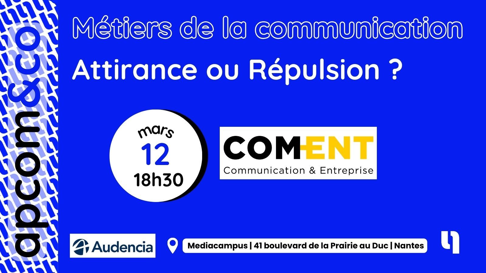 Les résultats d’une étude sur l’attractivité des métiers de la communication dévoilée en 2023 et menée par COM-ENT et le cabinet Occurrence viendront éclairer les échanges.