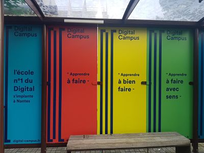 Digital Campus (Galileo Global Education) annonce l’ouverture de son campus nantais à la rentrée de septembre 2020, sur l’Ile de Nantes, portant ainsi son implantation à 10 villes, en France et à l’étranger. L’école, dont l’un des engagements porte sur le « digital responsable », accueillera plus de 80 étudiants pour cette première année, aussi bien en formation classique qu’en formation professionnelle. Digital Campus est déjà présente à Rennes où elle est dirigée par Lucie Baudouin, également en charge de l’implantation de l’école à Nantes. Parmi les cursus proposés : DA digital, UX Design, chef de projet web… La direction de l’établissement sera assurée par Jean-Charles Senon qui officie déjà au sein de Digital Campus Paris. Pour annoncer son arrivée, l’école s’est affichée dans les rues de Nantes à travers une campagne présente sur le réseau JC Decaux (ci-dessous).