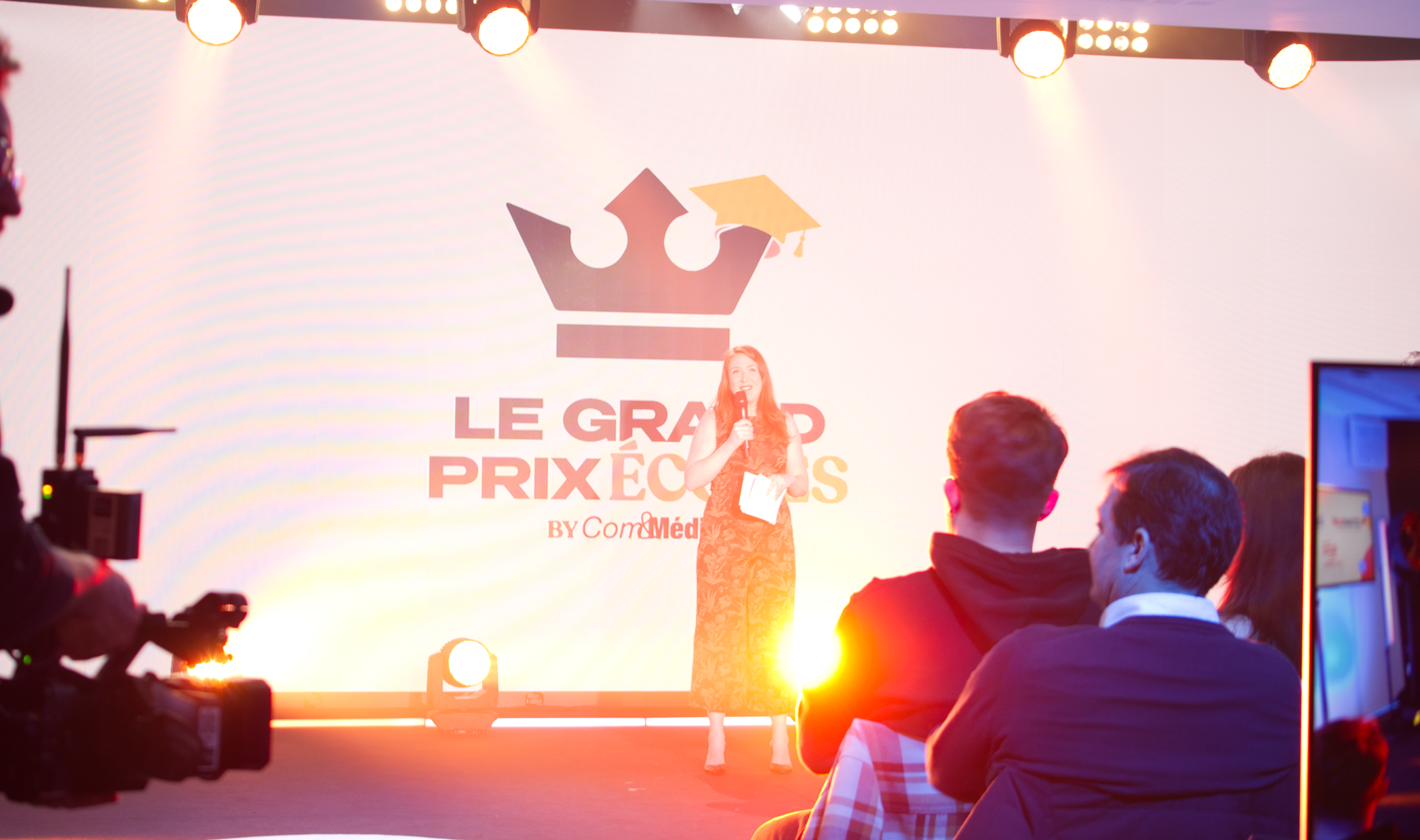 À la manière d’une véritable émission TV, la scénographie et la mécanique du Grand Prix Écoles s’inspirent des talent show comme « The Voice » ou « La France a un incroyable talent» : les étudiants montent sur scène et pitchent chacun un projet réalisé par l’école pendant 3 minutes devant un jury professionnel, 5 personnalités issues d’agences et d’entreprises.