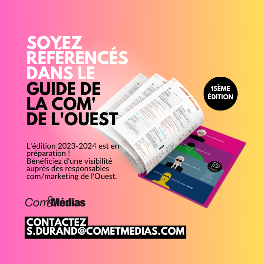 Pour plus d’informations, ou si vous souhaitez être référencé, contactez Stéphanie Durand : s.durand@cometmedias.com – Et découvrez le kit média du Guide de la Com pour booster votre visibilité auprès des annonceurs.