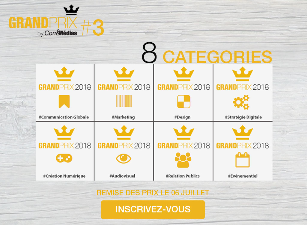 Com&Médias lance la 3ème édition de son Grand Prix, événement réservé aux agences de l’Ouest (Bretagne – Pays de la Loire). Cette année, le jury – presque exclusivement féminin – présidé par Aurélie Basse (Marque Bretagne – BDI), aura la possibilité de primer les agences à travers 8 catégories : Communication globale, Marketing, Design, Stratégie digitale, Création numérique, Audiovisuel, Relation Publics, Evénementiel… Clôture des inscriptions : le 3 avril. Remise des prix : le 6 juillet. Pour en savoir plus : www.cometmedias.com/grandprix