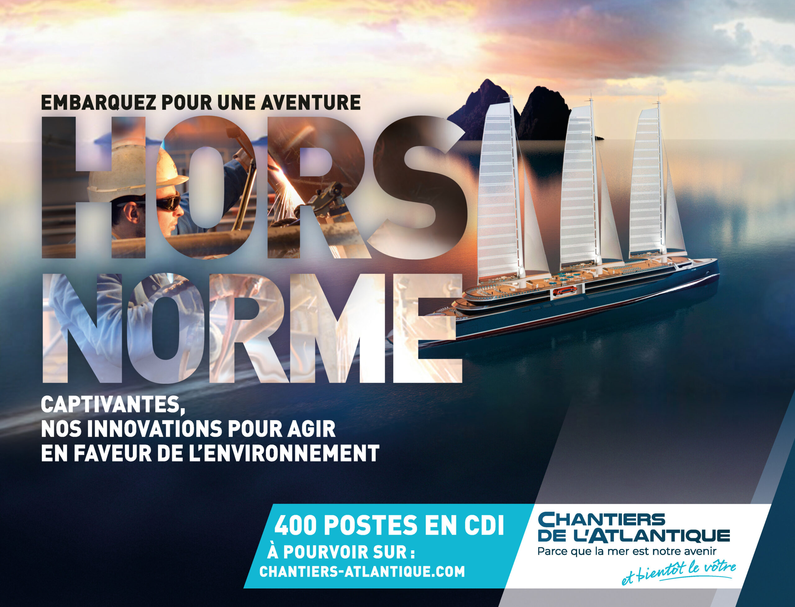 Les Chantiers de l’Atlantique (3.500 salariés, 1,9Md€ de CA) viennent de lancer une campagne de com’ baptisée « Hors Norme ». Orchestrée par Publicis Activ à Nantes, son enjeu est double. D’une part, diffuser une image positive et moderne de l’entreprise pour renforcer sa réputation. De l’autre, inciter à rejoindre l’entreprise de St-Nazaire, actuellement en plein recrutement. Interview de son dircom Yann Gontier