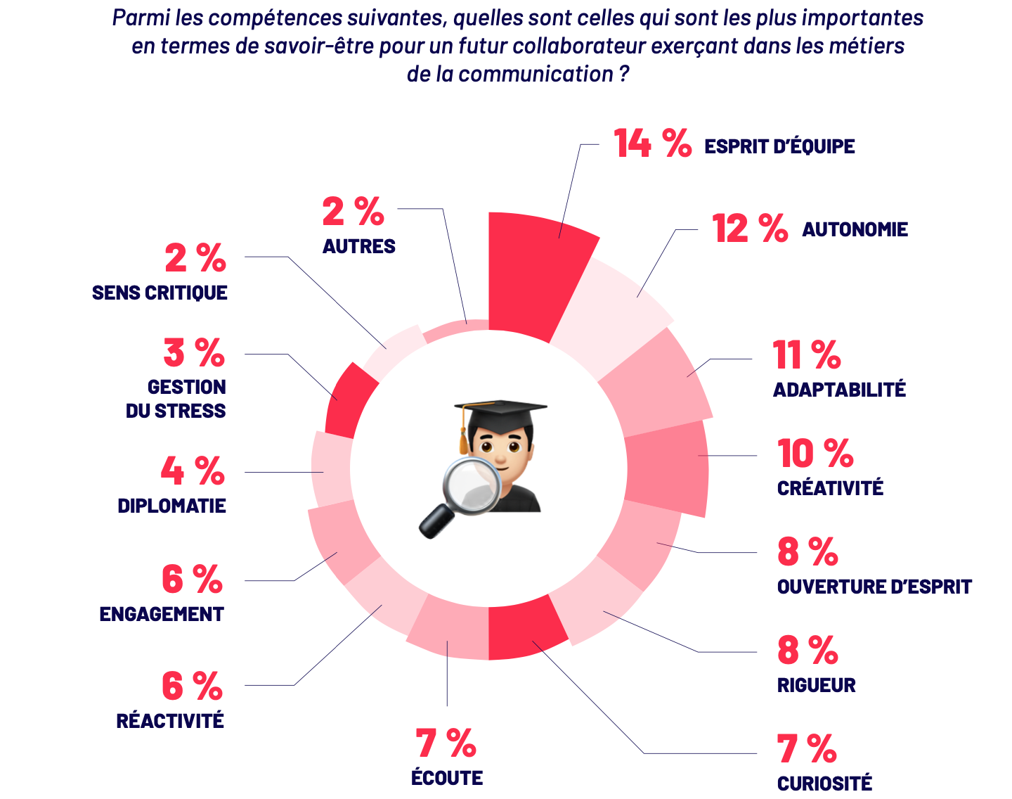 « Si les diplômes (66%) et l’expérience (81%) représentent des facteurs essentiels, ils ne suffisent plus. Le savoir-être est aujourd’hui, pour 94% des répondants, l’élément considéré comme le plus important pour travailler dans les métiers de la communication.» Tel est le constat du dernier baromètre des métiers de la communication, réalisé par Opinion Way pour Sup’ de Com.