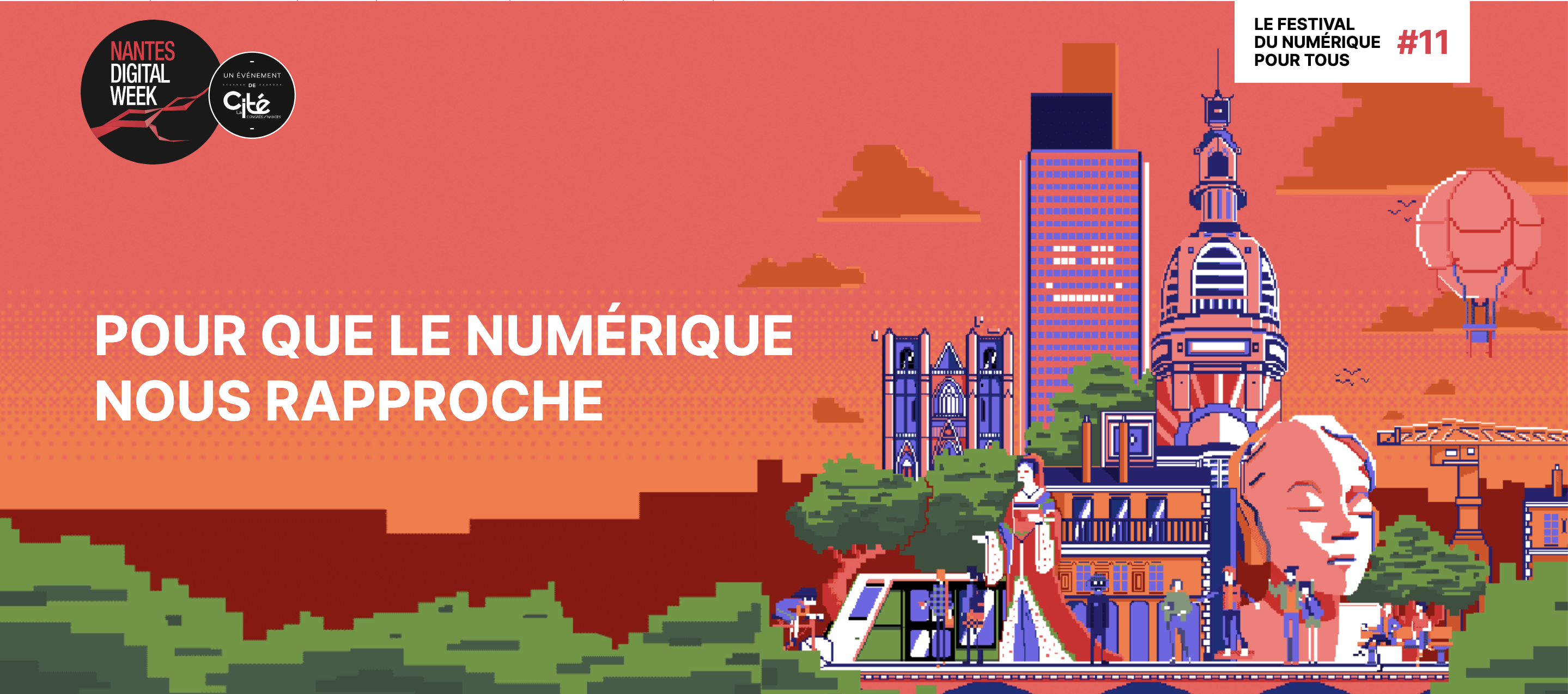 Né en 2014, Nantes Digital Week est aujourd’hui devenu l’un des évènements numériques généralistes les plus rassembleurs de France. Chaque année, pendant 10 jours, une centaine d’évènements est proposée au grand public comme aux professionnels, pour permettre à tous de s’informer, se divertir, se former, se rencontrer.