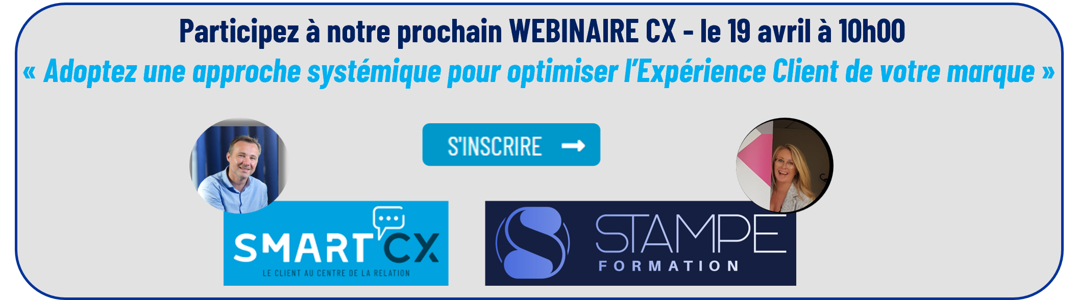 Patrice GIRAUDON de l’agence SMART’CX et Sandrine TASSERIE de STAMPE Formation vous donnent leur vision commune le 19 avril à 10h00
