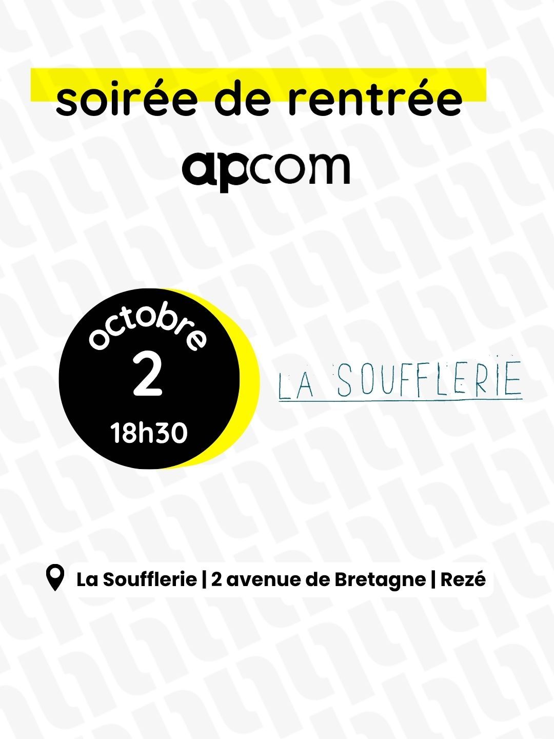 Apcom vous invite à découvrir leur programmation dans un lieu d’exception : la Soufflerie, espace de création et de diffusion culturelle au cœur de Nantes.